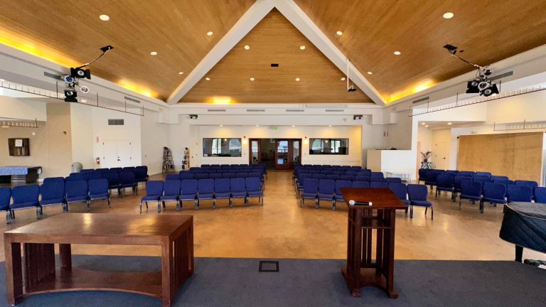 There are two big parking lots: on the side of the church, and in the back. Overflow parking is across the street at the French-American School.